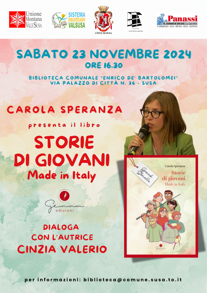 Saturday, November 23 at 04:30 pm at Enrico De' Bartolomei city library presentation of the book "Stories of young Made in Italy" by Carol Speranza.