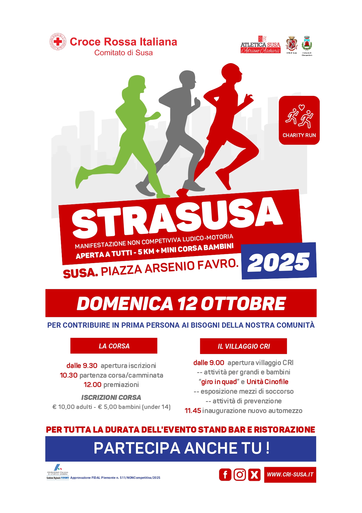 On Sunday, October 12 at Arsenio Favro square StraSusa, non-competitive fun and physical activity event open to all - 5 km and mini children's race.