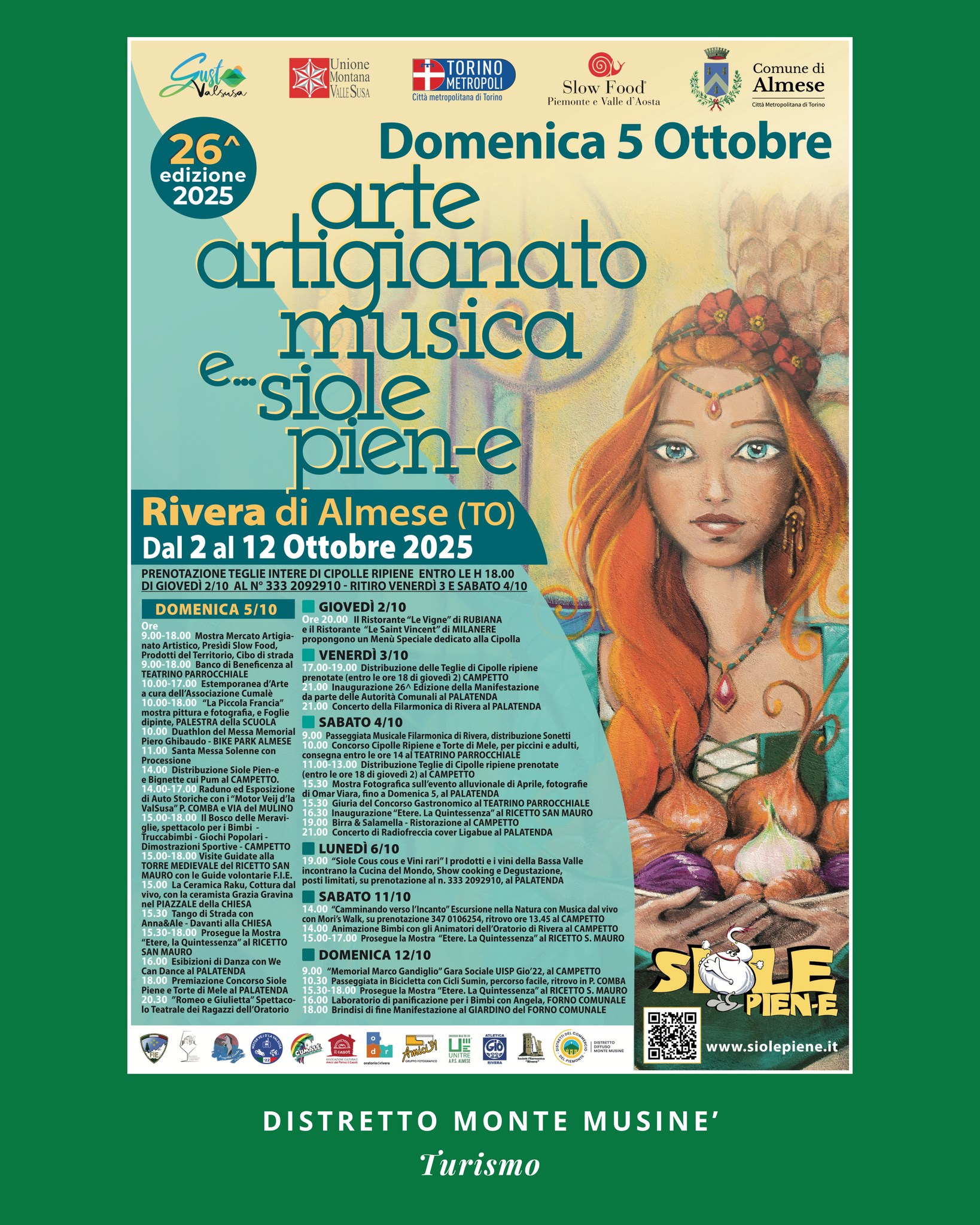 One of the most eagerly awaited autumn events in the Susa Valley is back again this year: the 26th edition of “Art, Crafts, Music and… Siole Pien-e”, scheduled for Sunday, October 5 in Rivera di Almese, with a rich calendar of events running from Thursday, October 2 to Sunday, October 12.