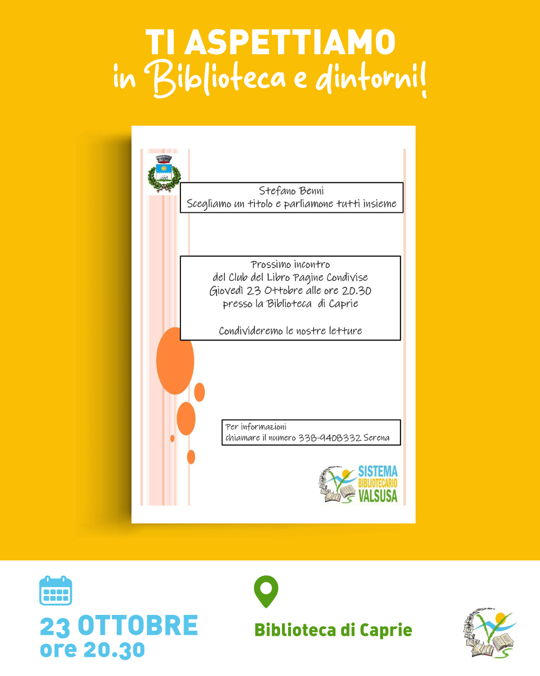 Do you enjoy reading and interacting with other readers? Then don't miss the next meeting at the library in Caprie!