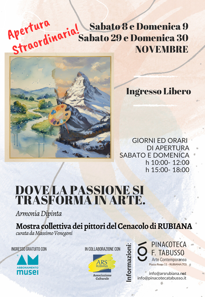 At the F.Tabusso gallery on November 29 and 30 from 10:00 am to 12:00 pm and from 03:00 pm to 06:00 pm "Where passion turns into art" exhibition.