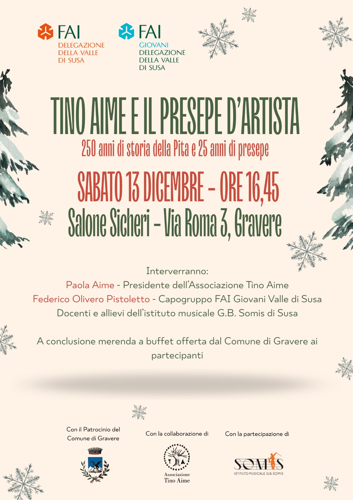 To find out more, the FAI – Susa Valley Delegation awaits you for an afternoon dedicated to Tino Aime and the artistic nativity scene, combining tradition, art, and music.