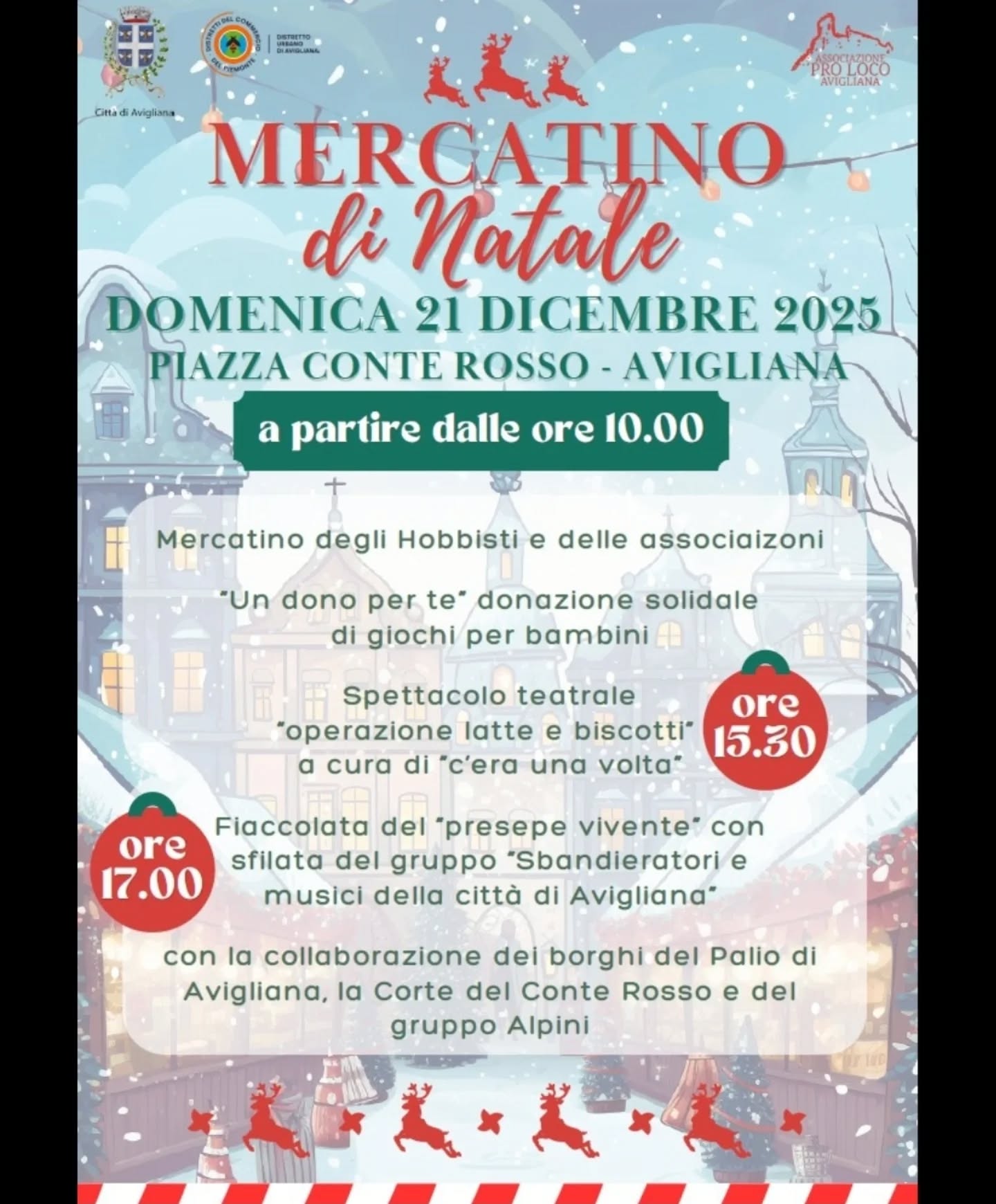 Starting at 10:00 a.m., Piazza Conte Rosso will be leading up to Christmas with a market featuring hobbyists and associations, an event to admire their artisanal products and promote their local activities.