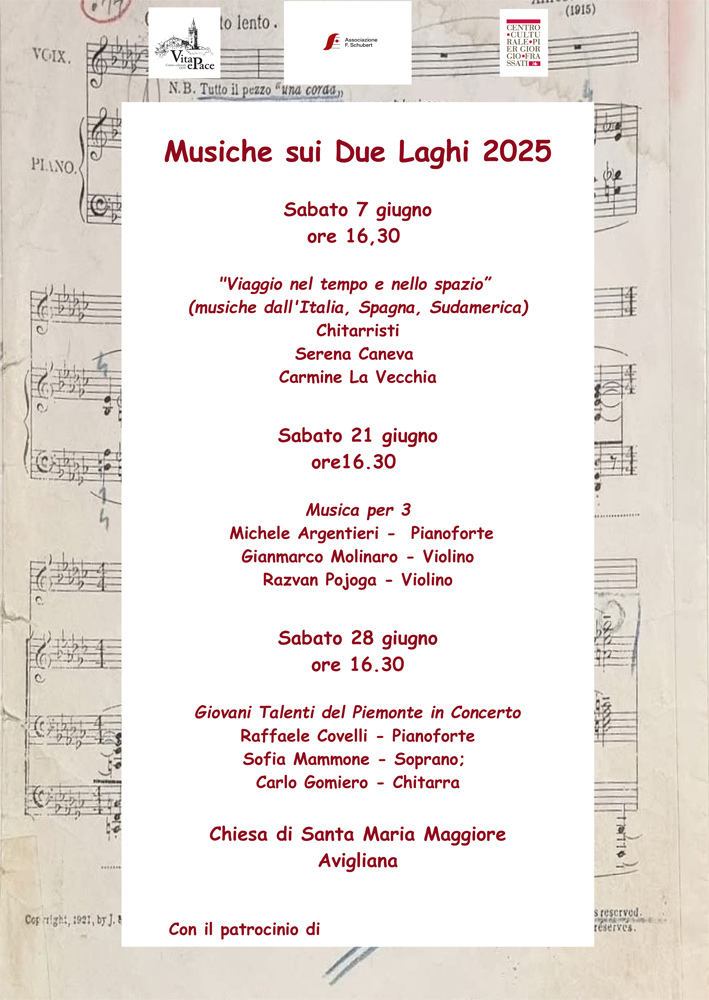 On Saturday, June 21 at 04:30 pm at the church of Santa Maria Maggiore "Music for 3" concert.