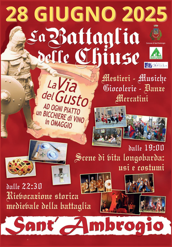 The village of Sant’Ambrogio di Torino is preparing to take a dip into the past with the historical reenactment of the Battle of Chiusa, a famous clash that took place in the year 773 between the Frankish army of Charlemagne and the Lombard troops led by King Desiderio.