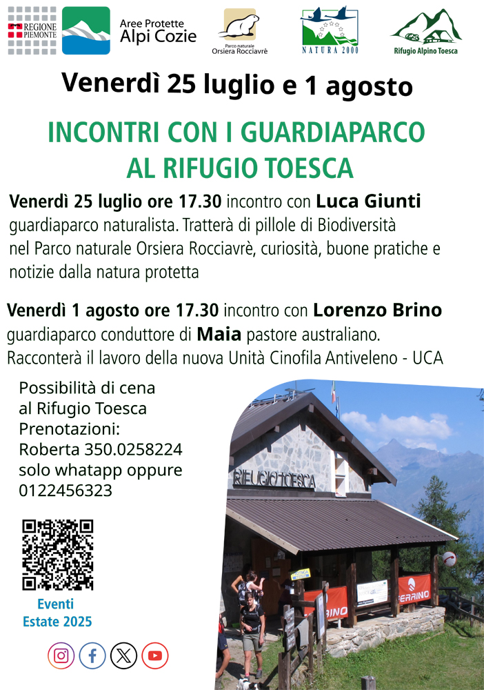 On Friday, July 25 at 05:30 pm in Bussoleno, Toesca refuge, "There's a Big Difference! Biodiversity in the Cottian Alps", meeting with Luca Giunti.