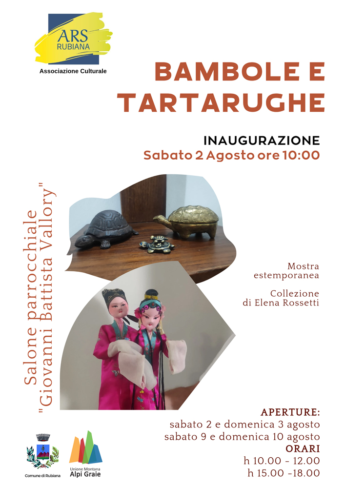 On Saturday, August 2 at 10:00 am at the G.B.Vallory parish hall opening of the exhibition "Dolls and Turtles" by Elena Rossetti.