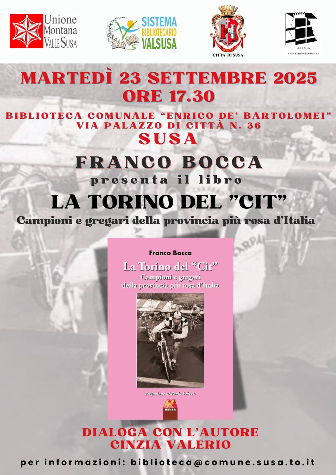 On September 23 at 05:30 pm at "Enrico De' Bartolomei" city library presentation of the book by Franco Bocca "La Torino del Cit".