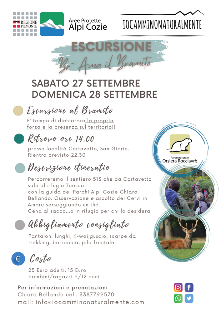 Hike along trail 513 from Cortavetto to the Toesca mountain hut, accompanied by Parchi Alpi Cozie guide Chiara Bellando, to observe and listen to deer during the mating season.