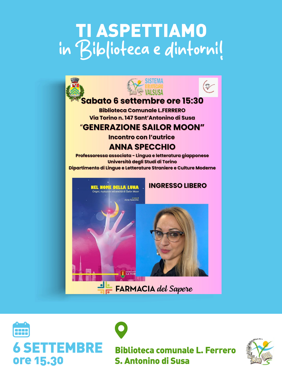 On Saturday, September 6 at 03:30 pm at L. Ferrero city library in Sant'Antonino di Susa "Sailor Moon generation".