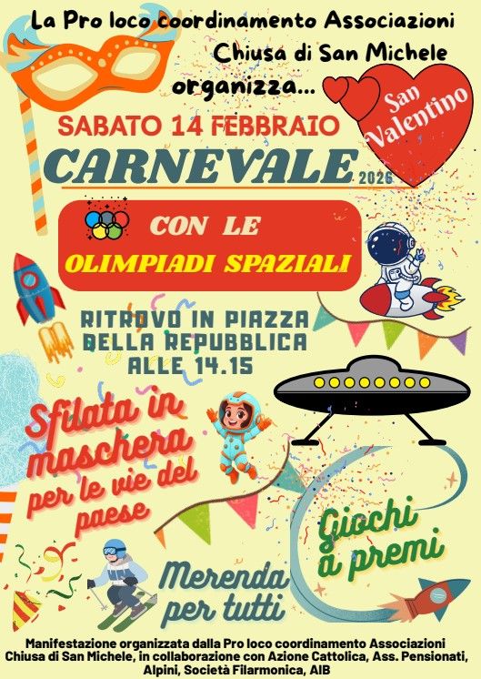 Meet in Piazza della Repubblica at 2:15 PM. A costumed parade through the town streets, games with prizes, and snacks for everyone.