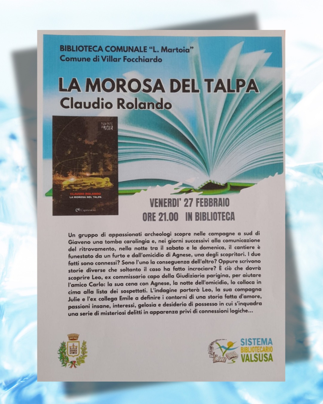 Friday, February 27 at 09:00 pm at the library presentation of the book by Claudio Rolando "La morosa della talpa".