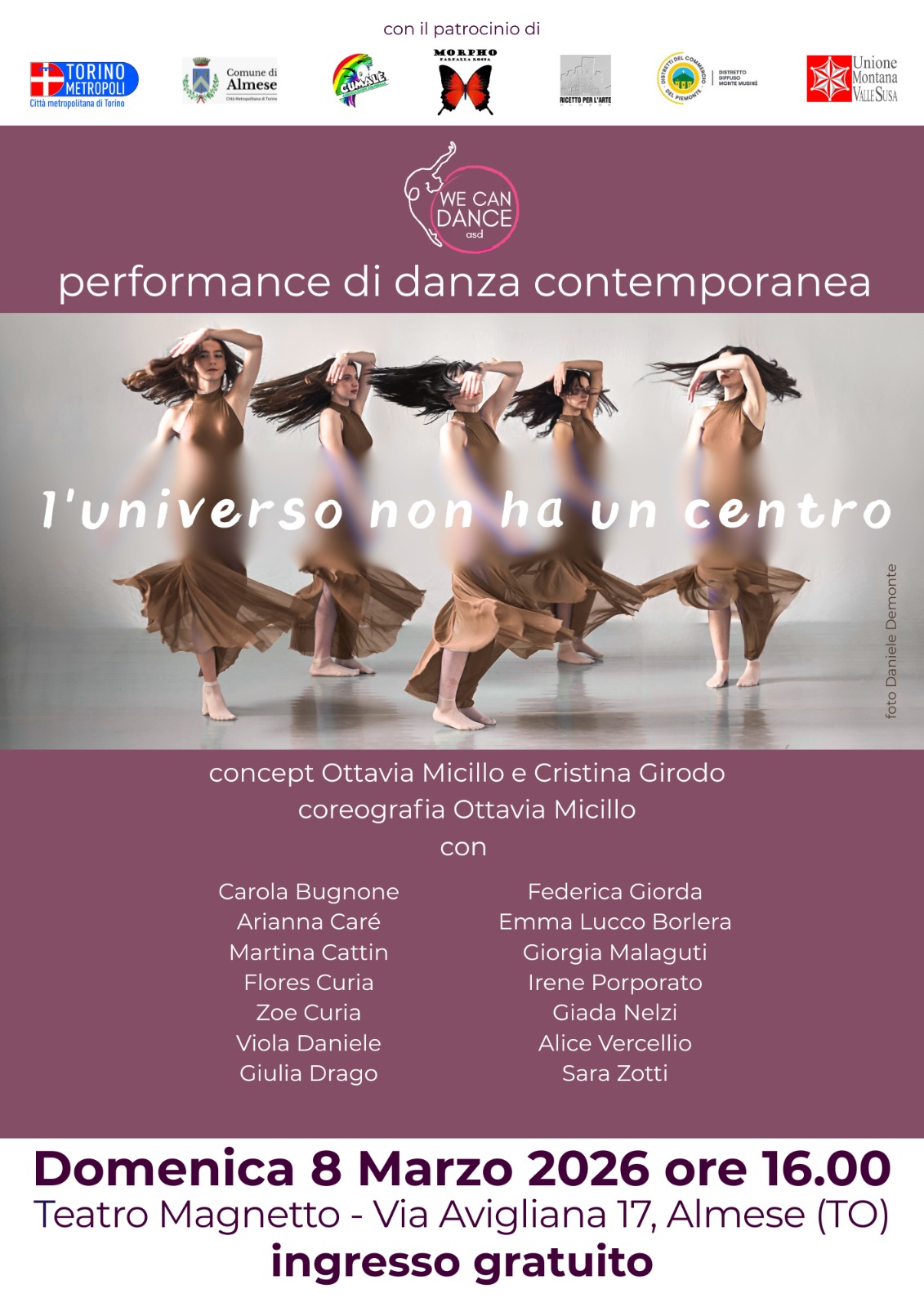 WE CAN DANCE asd presents the contemporary dance performance "The Universe Has No Center," based on a concept by Ottavia Micillo and Cristina Girodo, with choreography by Ottavia Micillo.