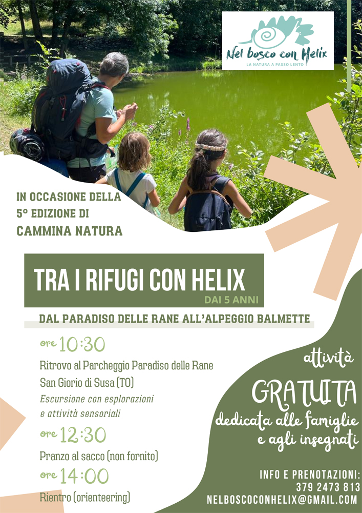 En vallée de Suse PARMI LES REFUGES AVEC HELIX : DU PARADIS DES GRENOUILLES À LA SALLE DE RENCONTRE BALMETTE - ACTIVITÉS POUR LES FAMILLES ET LES ENSEIGNANTS avec Tatiana Emilia Ambrogio.