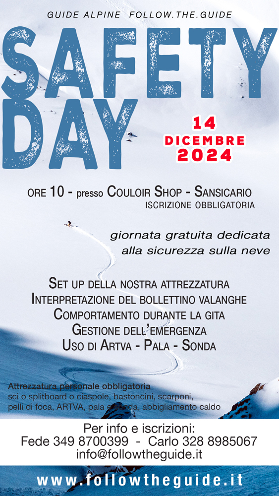 Journée sécurité gratuite et ouverte à tous (skis, snowboards, raquettes), dédiée à la sécurité sur les champs enneigés qui donnera officiellement le coup d'envoi de la saison hivernale des stages de ski-alpinisme.