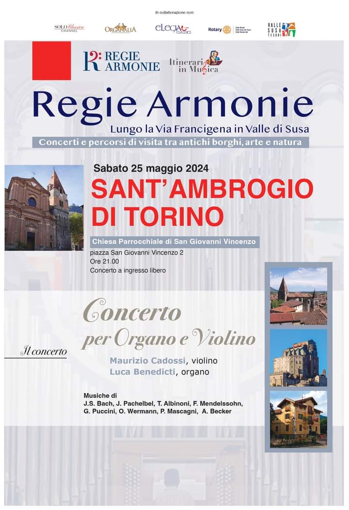Samedi 25 mai à 21h00 dans l'église paroissiale de San Giovanni Vincenzo Concert pour orgue et violon avec Maurizio Cadossi et Luca Luca Benedicti.