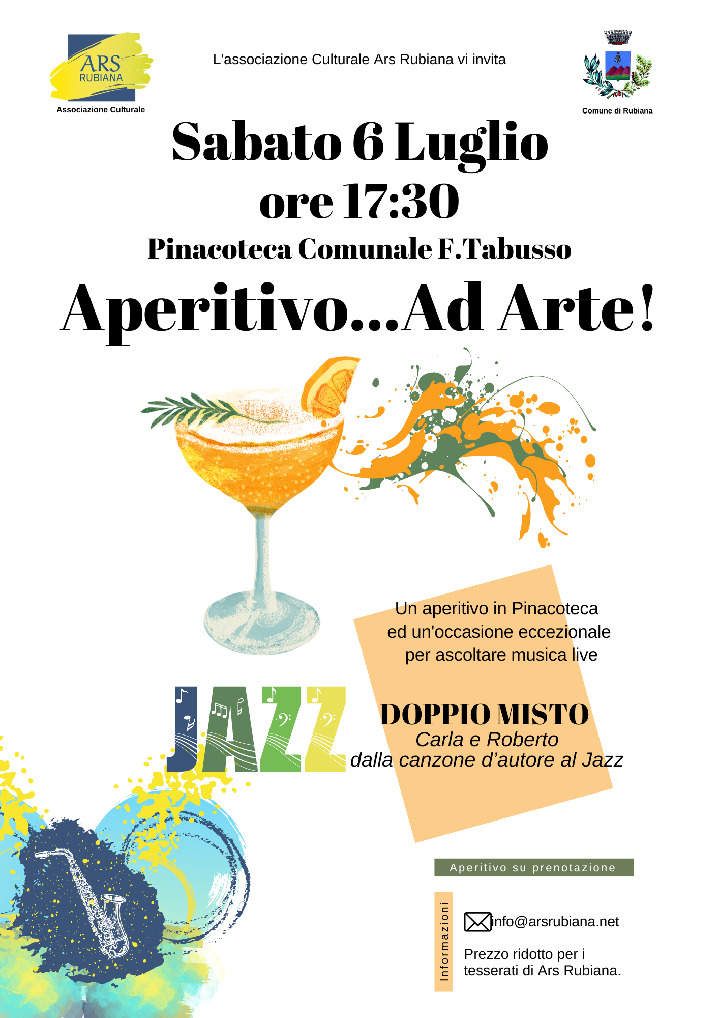 Samedi 6 juillet de 17h30 une occasion privilégiée de prendre un apéritif dans la cour Art Nouveau de la magnifique Villa Querena, accompagné de la musique JAZZ de voix et piano du duo DOPPIO MISTO, avec une visite pour découvrir les grandes œuvres du XXe siècle conservées dans la Galerie d'art Francesco Tabusso à Rubiana.