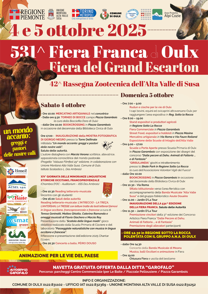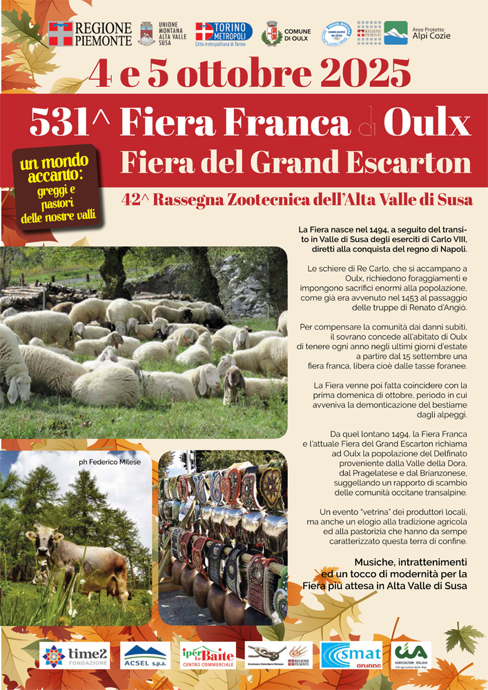 L’actuelle Foire Franca del Grand Escarton est le dernier événement en Haute Vallée de Suse étroitement lié aux activités agro-sylvo-pastorales, mais c’est aussi une vitrine pour les producteurs locaux et une occasion de fête, de musique, de danse et de divertissement.