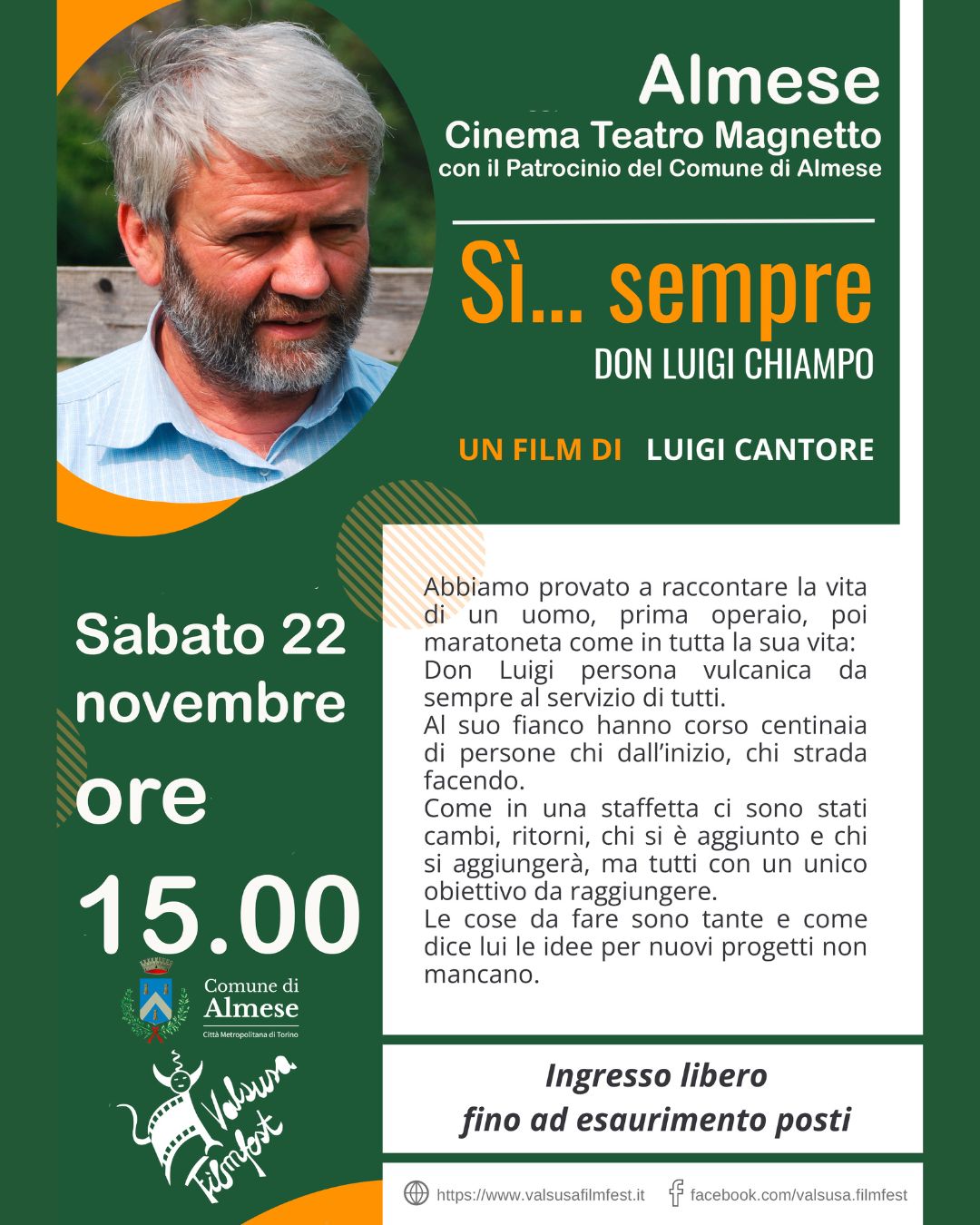 Samedi 22 novembre à 15h00 au théâtre Magnetto à Almese "Sì... sempre. Don Luigi Chiampo", un film par Luigi Cantore.