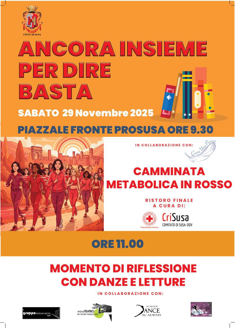 Réunis à nouveau pour dire assez. Samedi 29 novembre en piazza del Sole à 09h30 marche métabolique en rouge; à 11h00 un moment de réflexion avec danse et lectures.