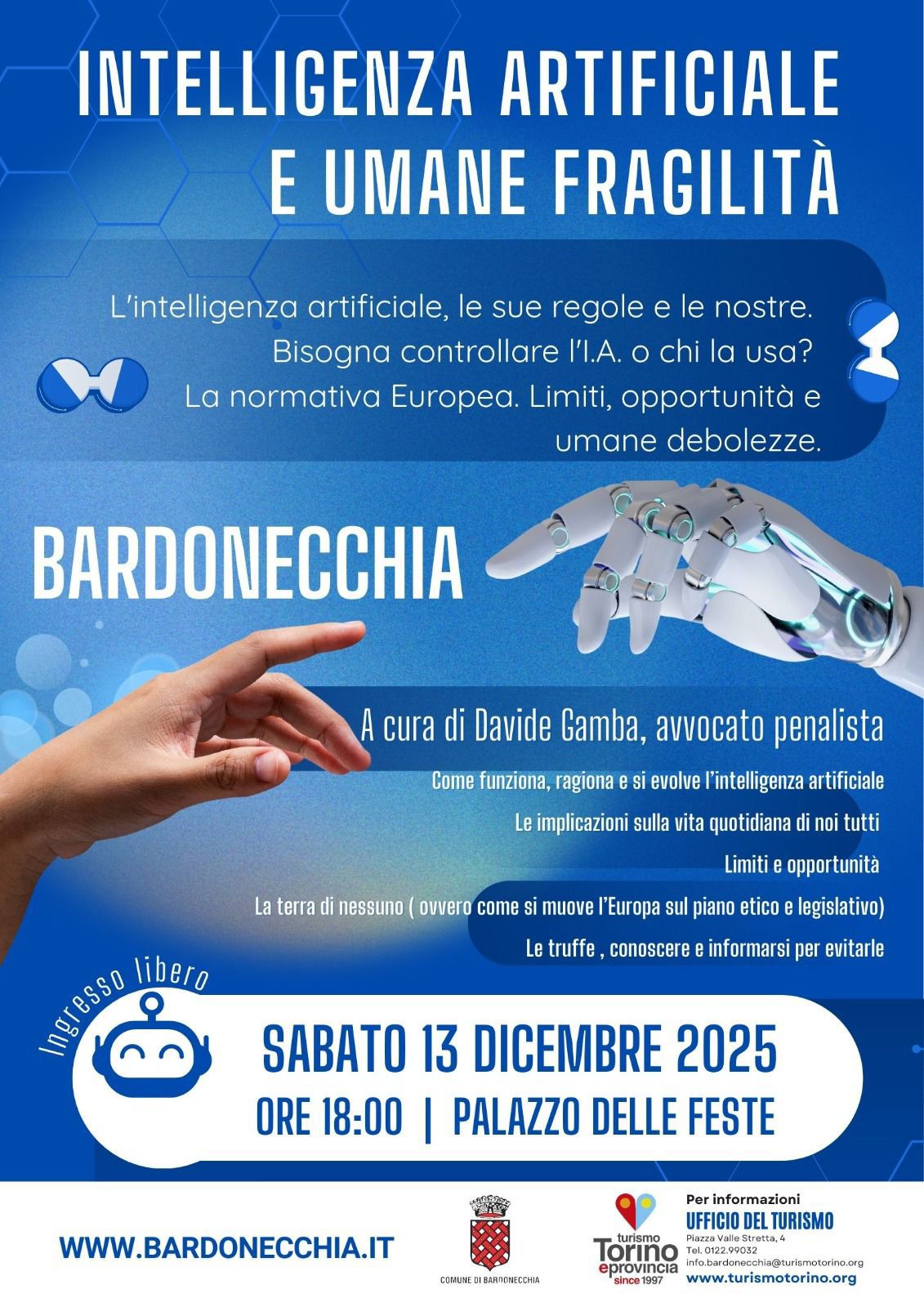 Samedi 13 décembre à 18h00 dans le Foyer du Palazzo delle Feste "Intelligence artificielle : ses règles et les nôtres".