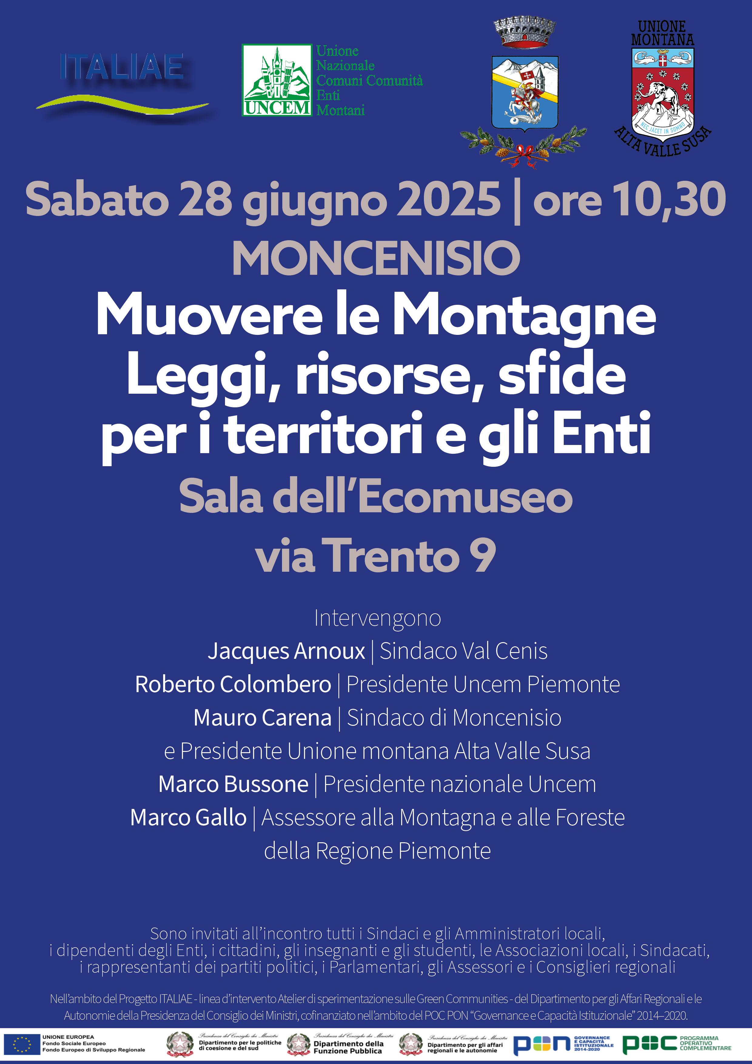 Samedi 28 juin à 10h30 dans la salle de l'écomusée Le terre al confine conférence "Déplacer des montagnes. Lois, ressources, défis pour les territoires et les institutions".