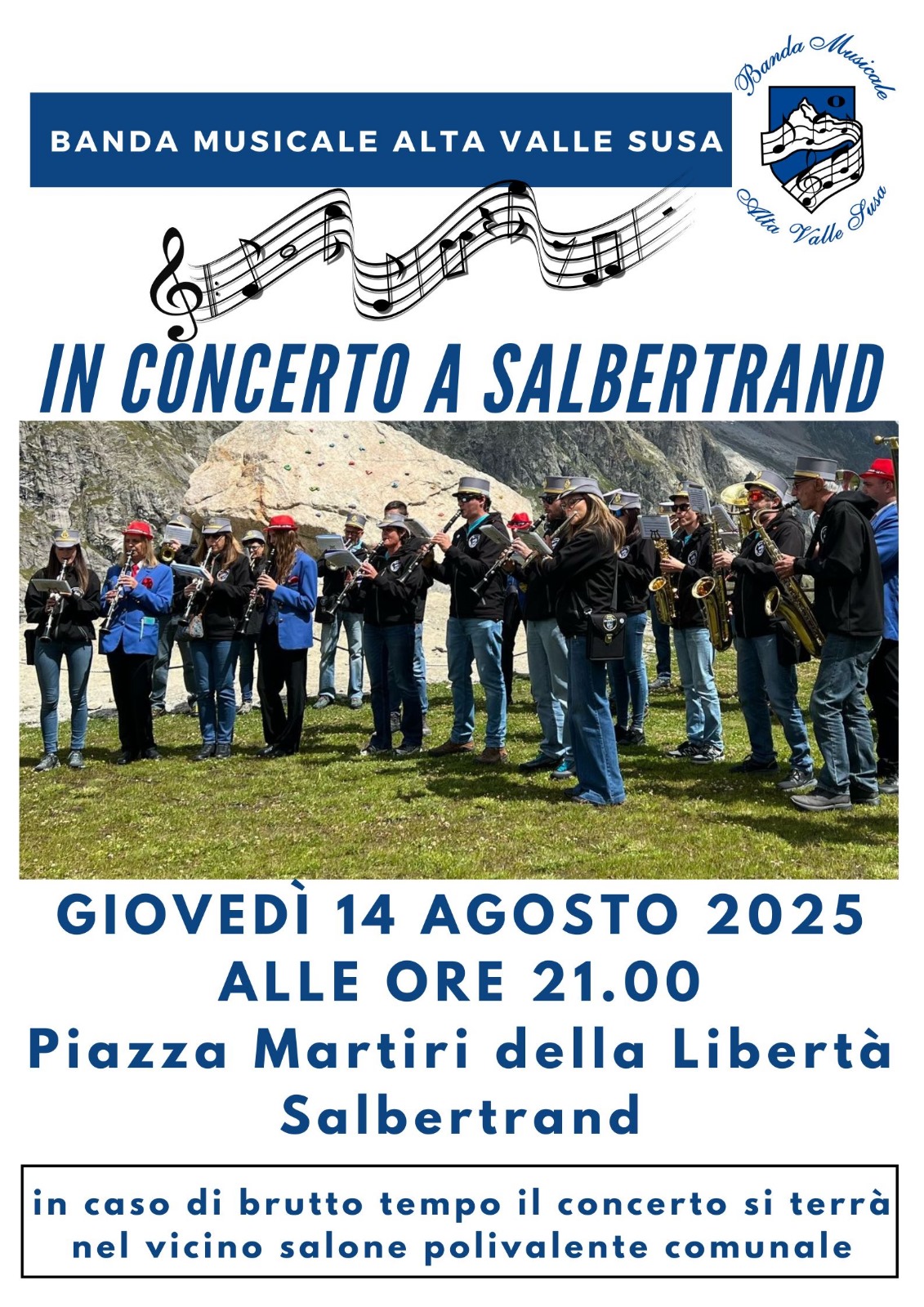 La Banda Alta Valle Susa en concert à Salbertrand, à 21h00 en place Martiri della Libertà.