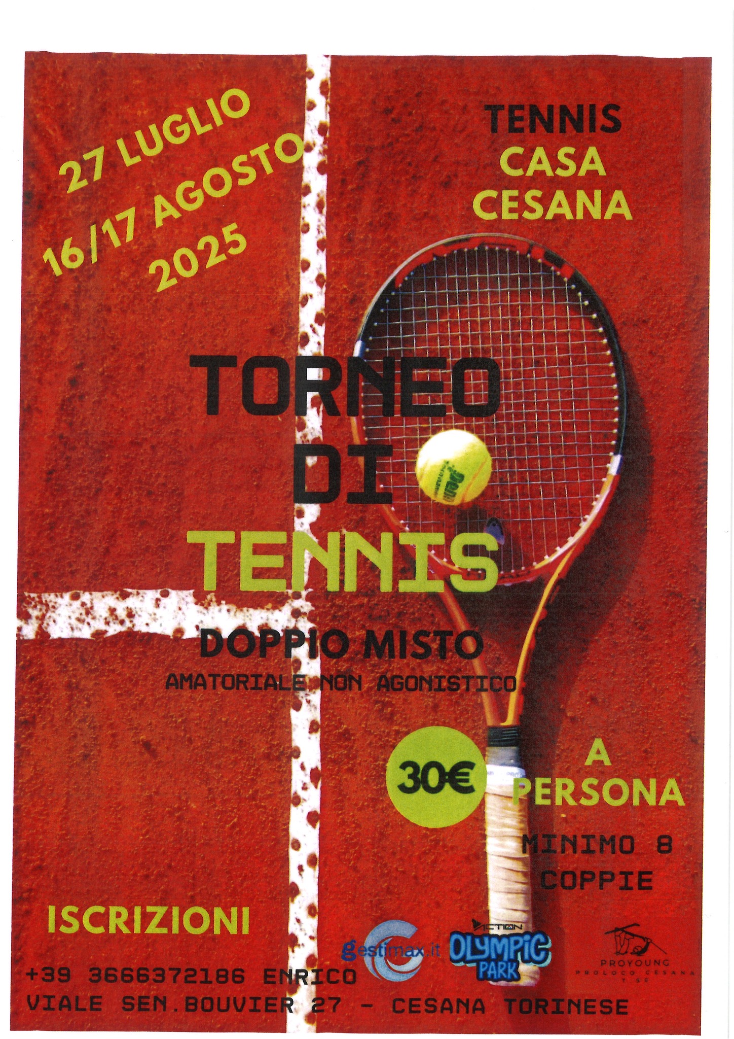 Le 16 at 17 août tournois de tennis à Cesana. À vos raquettes, des matchs palpitants vous attendent !