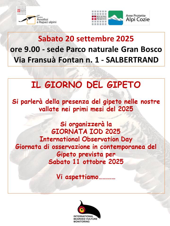 Les gardes du Parc des Alpes Cozie, responsables du projet, présenteront les données issues des observations du premier semestre 2025, avec une attention particulière portée aux couples territoriaux et à leurs reproductions. Ils feront également le point sur la Journée Internationale d’Observation (IOD) 2024 et poseront les bases de l’organisation de la Journée IOD 2025, qui se tiendra le samedi 11 octobre.
