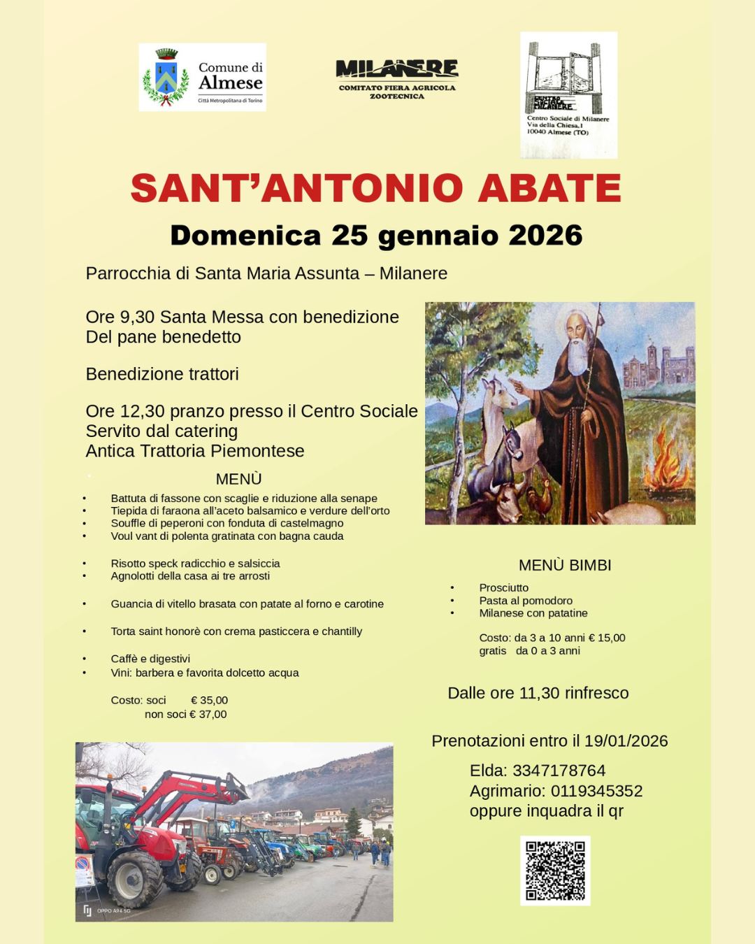 Réservation obligatoire avant le 19 janvier: 3347178764 (Elda) - 0119345352 (Agrimario).