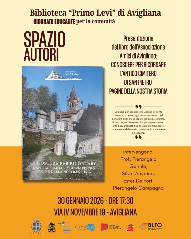 Vendredi 30 janvier à 17h30 présentation du livre "Conoscere per ricordare: l'antico cimitero di San Pietro" avec Gentile Pierangelo.