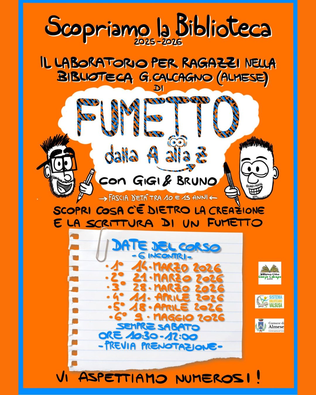 Inscription obligatoire par courriel avant 16h le vendredi précédant l'atelier : prestiti.bibliotecadialmese@gmail.com.
