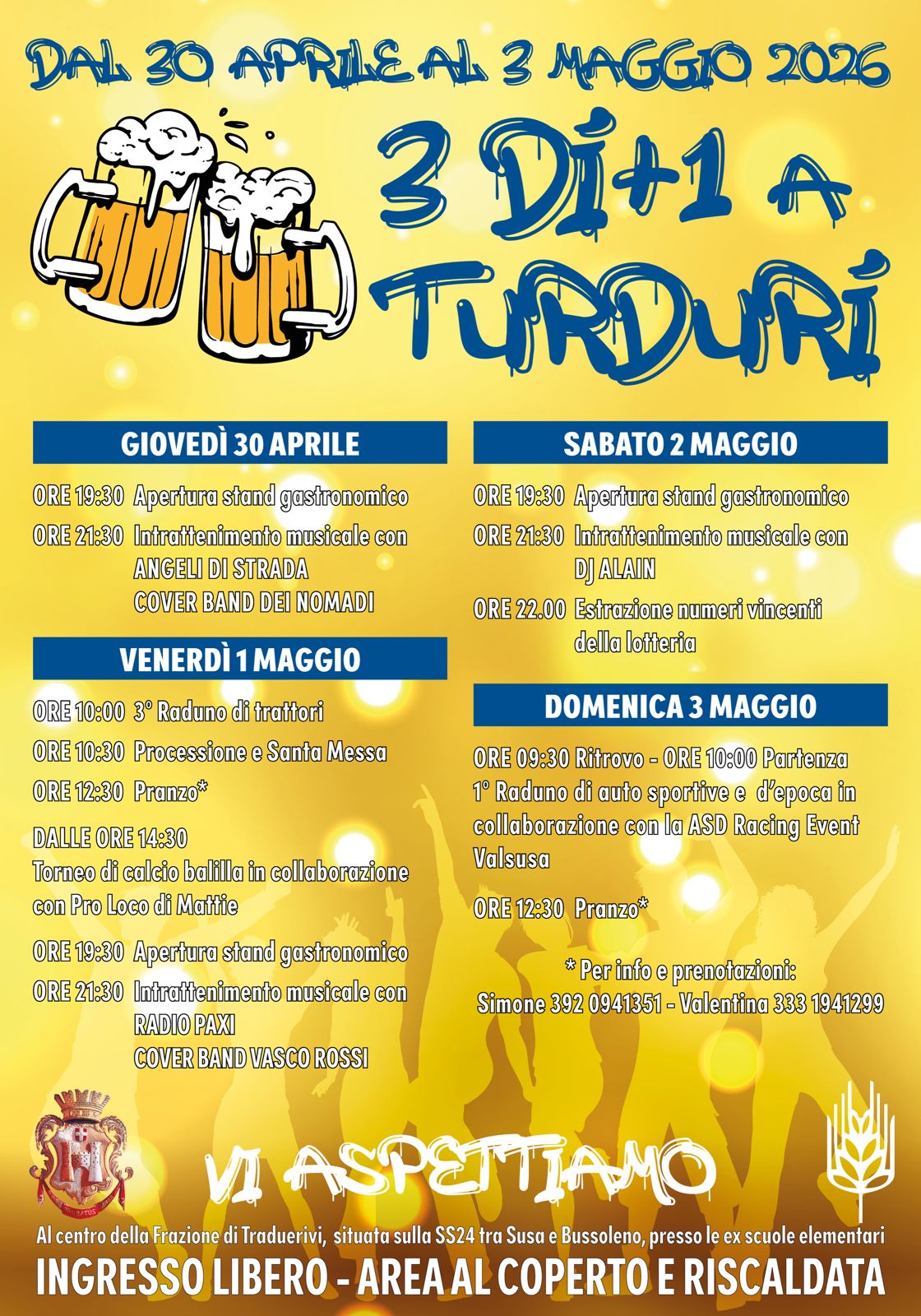 Du jeudi 30 avril au dimanche 3 mai, à l'ancienne école primaire du hameau de Traduerivi, à Suse, se déroulera l'événement « 3 jours + 1 à Traduerivi ».