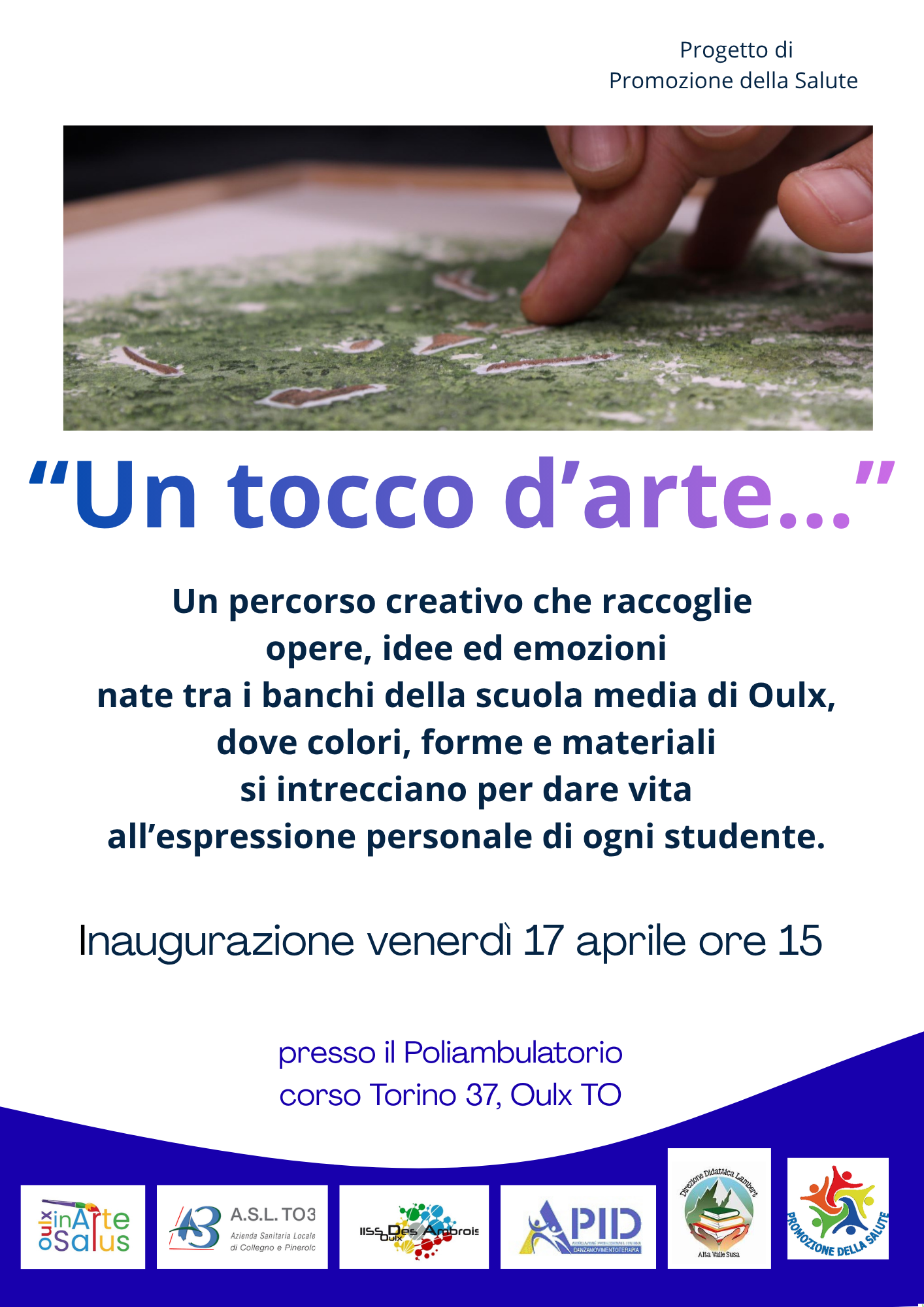 Dans le cadre du projet de promotion de la santé « Oulx in Arte Salus », la Casa della Salute (Centre de santé), située au Corso Torino 37, accueille l’exposition « Une touche d’art… ».