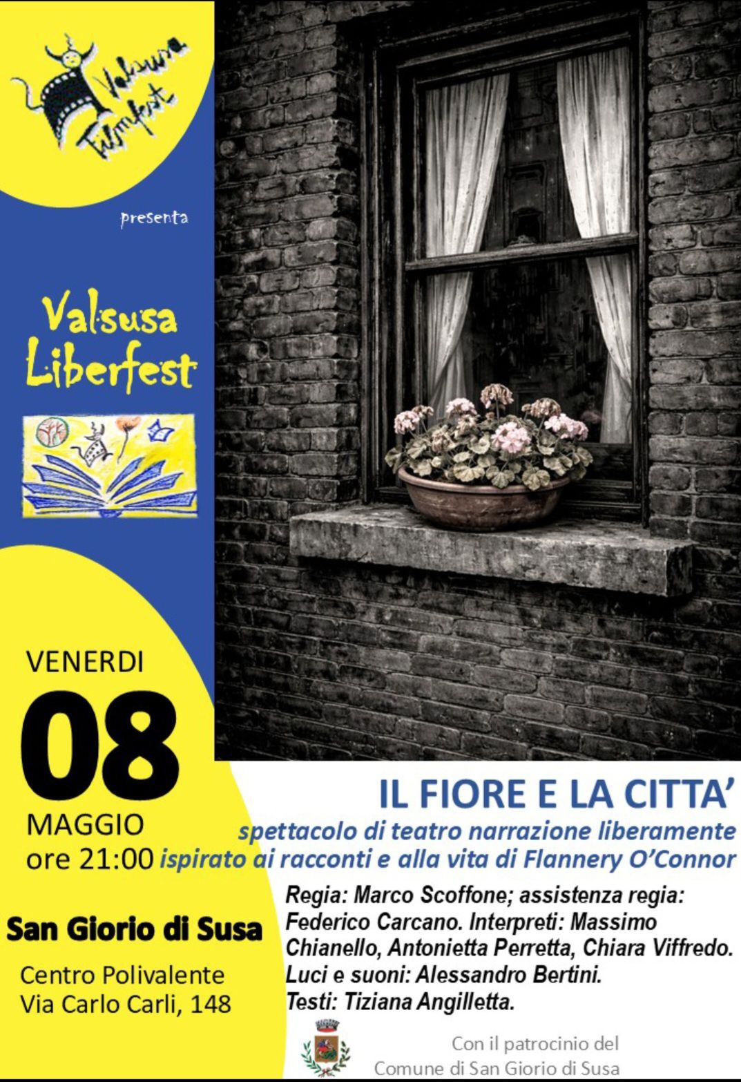 Vendredi 8 mai à 21h00 à San Giorio, centre polyvalent, ValsusaLiberfest : « La Fleur et la Ville », un spectacle de théâtre narratif librement inspiré des histoires et de la vie de Flannery O'Connor.