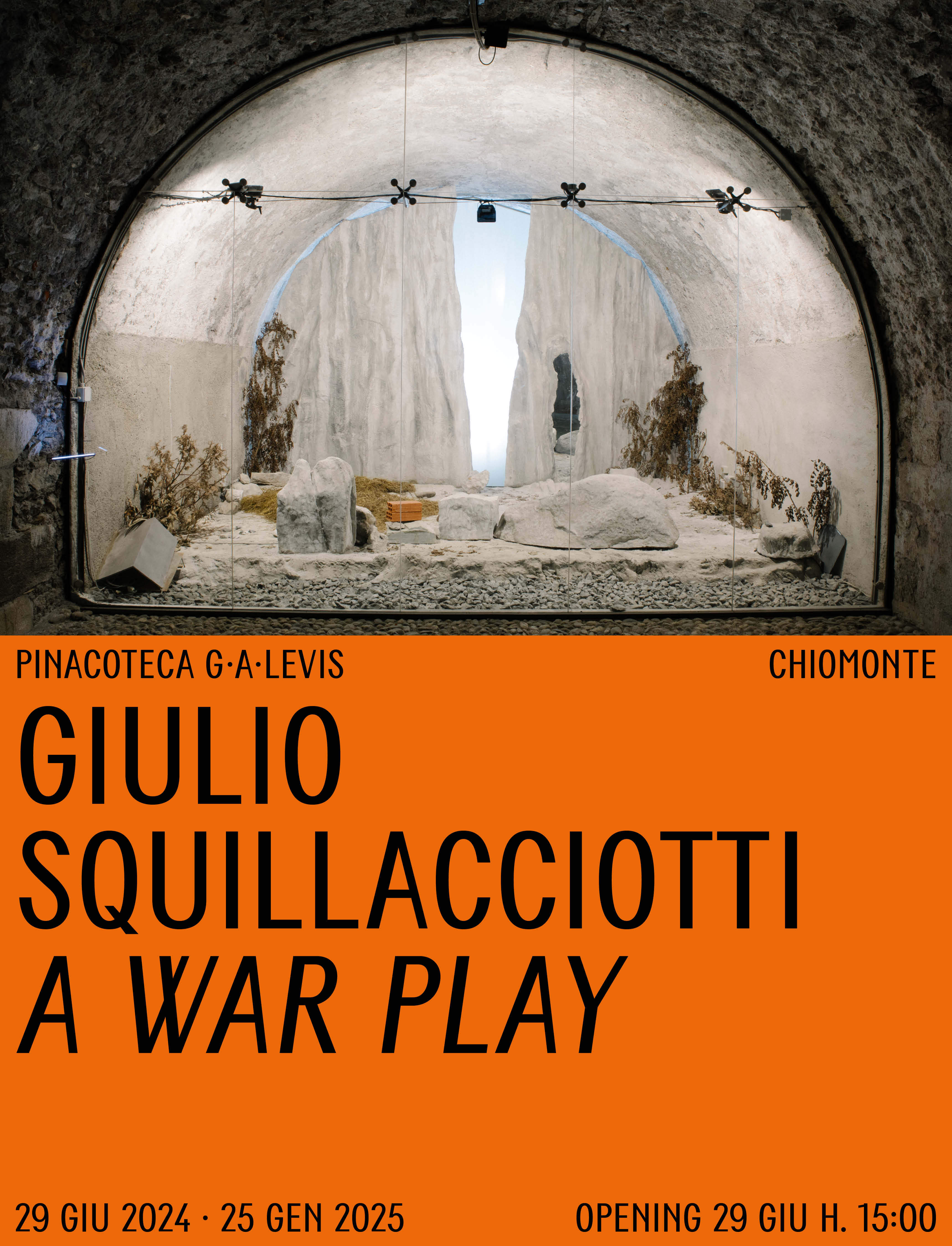 Inaugura sabato 29 giugno a Chiomonte la mostra A War Play dell'artista Giulio Squillacciotti, esito di un periodo di residenza, parte del programma avviato da Pinacoteca G.A. Levis volto a ospitare artiste e artisti contemporanei con l’intento di attivare nuove narrazioni a partire dal corposo patrimonio di opere pittoriche del paesaggista Giuseppe Augusto Levis e incrementare le collezioni pubbliche.