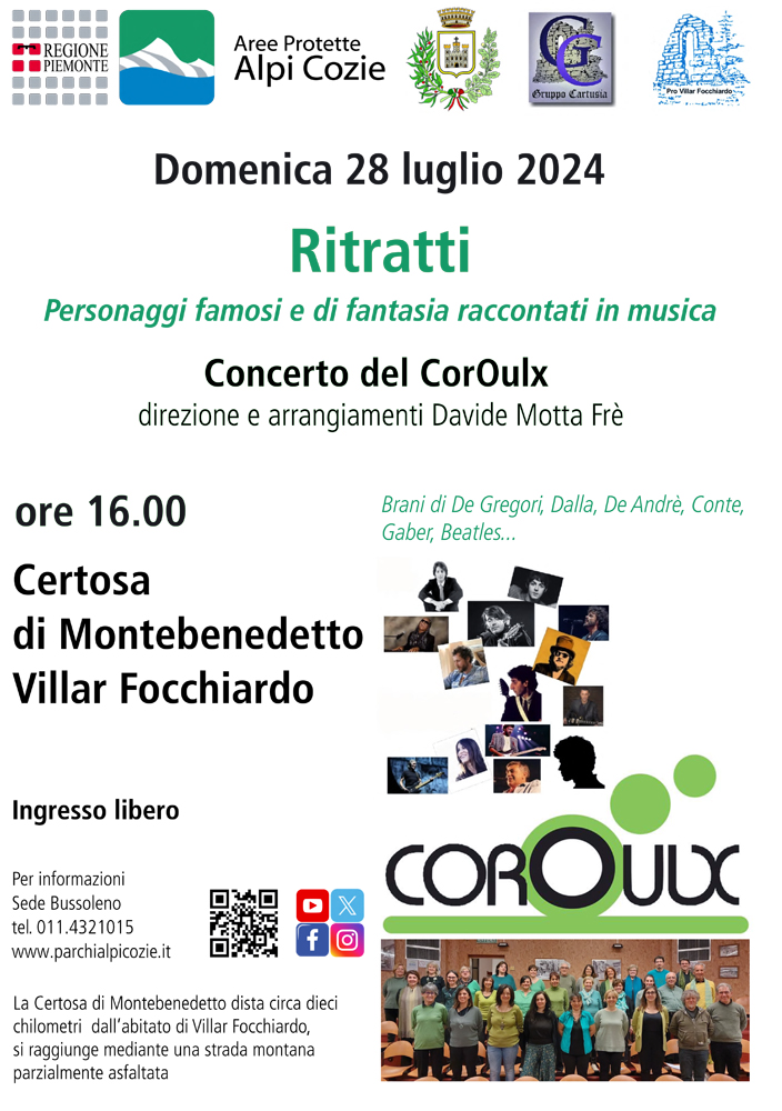 Domenica 28 luglio ore 16 RITRATTI - Personaggi famosi e di fantasia raccontati in musica. Concerto del CorOulx.