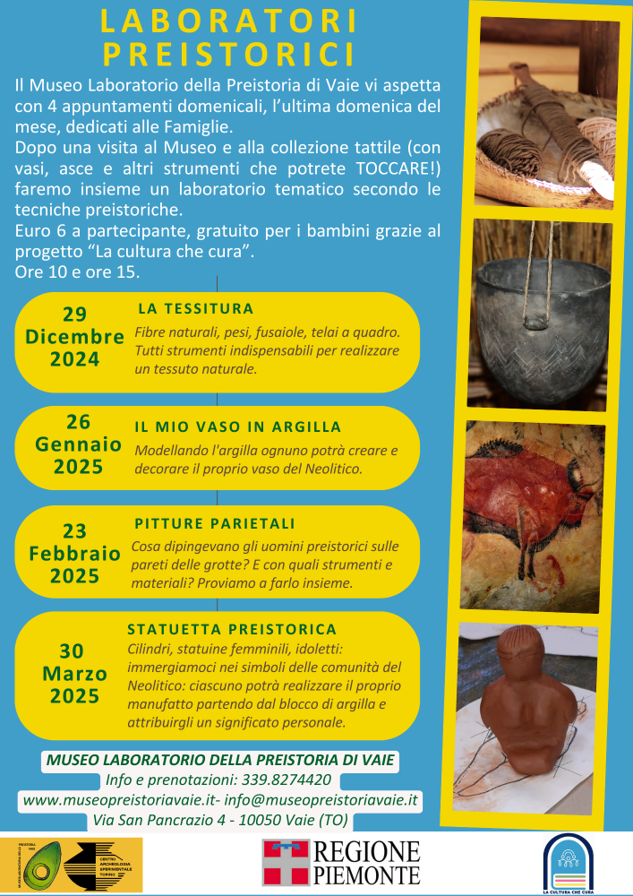Il Museo Laboratorio della Preistoria di Vaie vi aspetta con 4 appuntamenti domenicali, l’ultima domenica del mese, dedicati alle Famiglie.