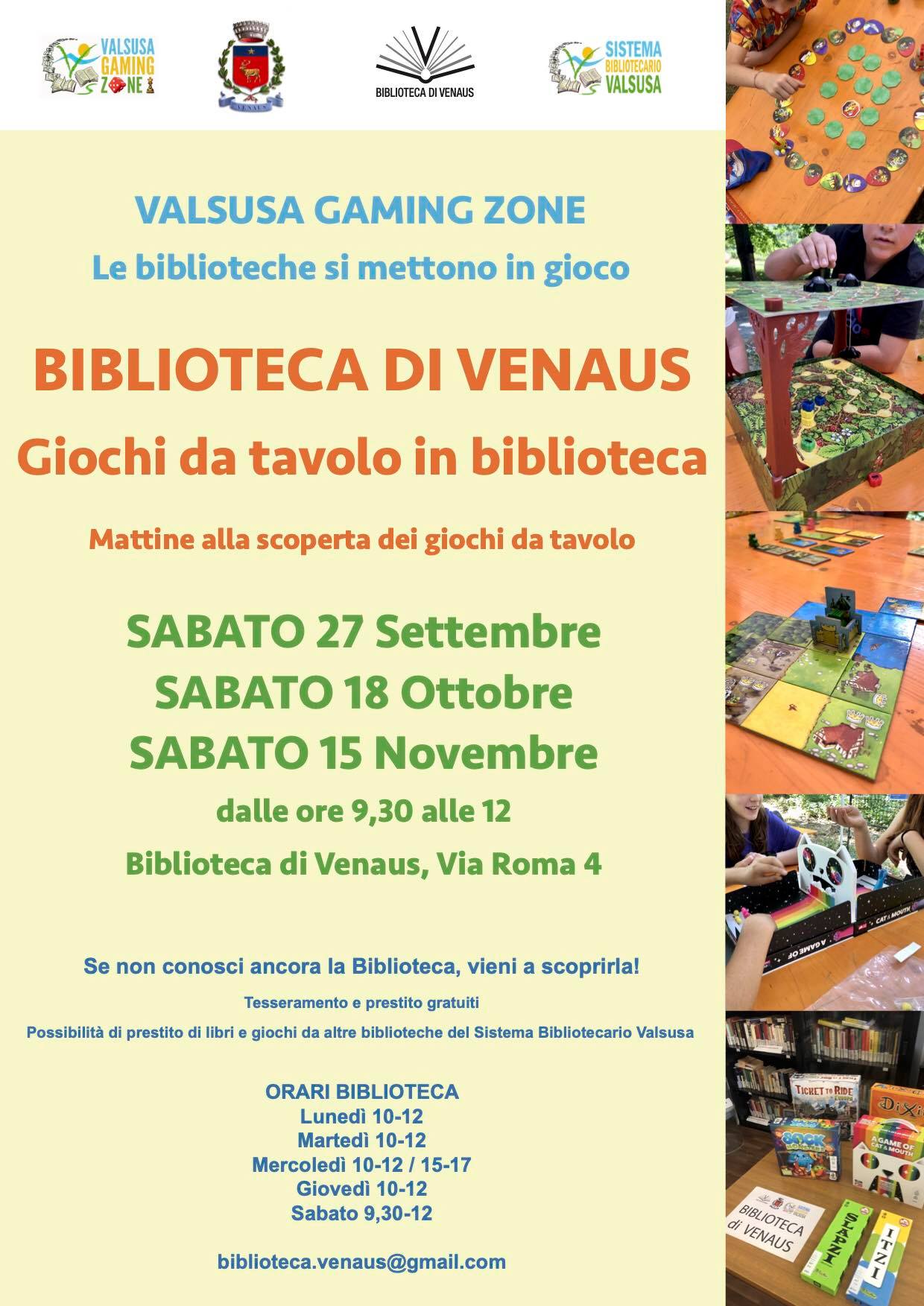 Dalle 9:30 alle 12 “Valsusa gaming zone”, giochi da tavolo in biblioteca.