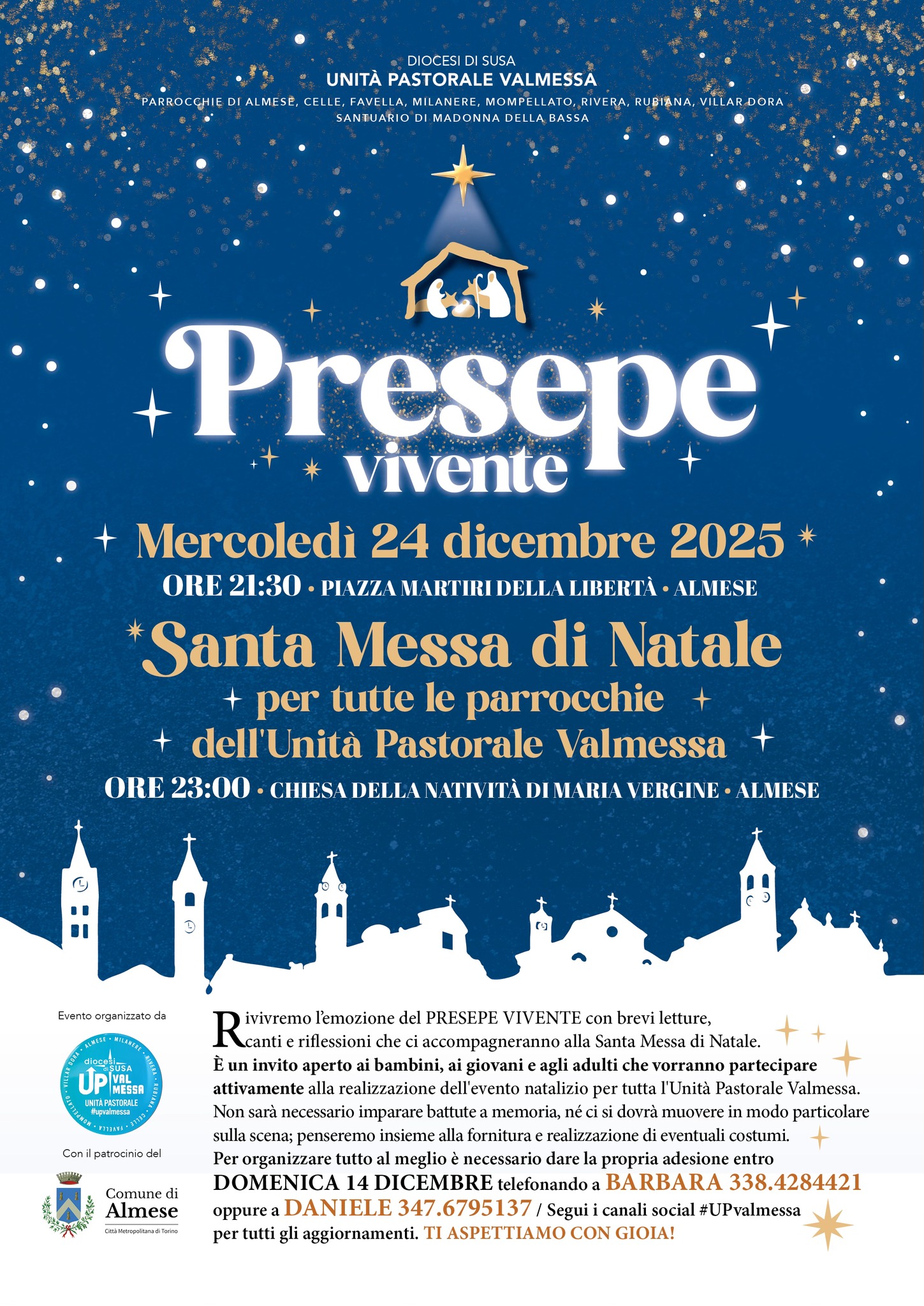 La Vigilia di Natale, mercoledì 24 dicembre alle ore 21:30, Piazza Martiri della Libertà sarà animata dal suggestivo Presepe Vivente organizzato dalla Parrocchia di Almese.