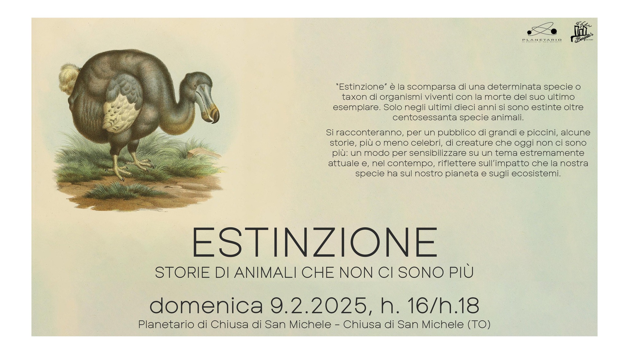 Un doppio incontro per riflettere sul tema dell'Estinzione. Appuntamento domenica 9 febbraio alle 16 e alle 18 al Planetario.