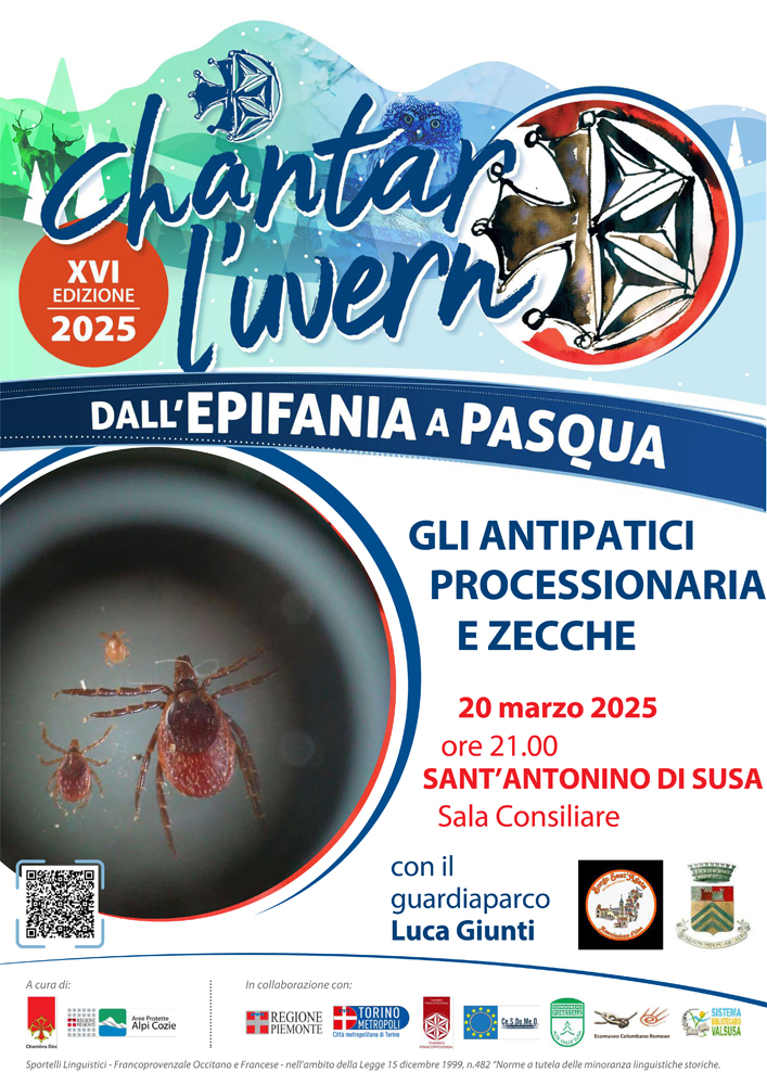 Giovedì 20 marzo ore 21 a Sant'Antonino di Susa in sala consiliare incontro tematico con il guardiaparco Luca Giunti "Gli antipatici: processionaria e zecche".