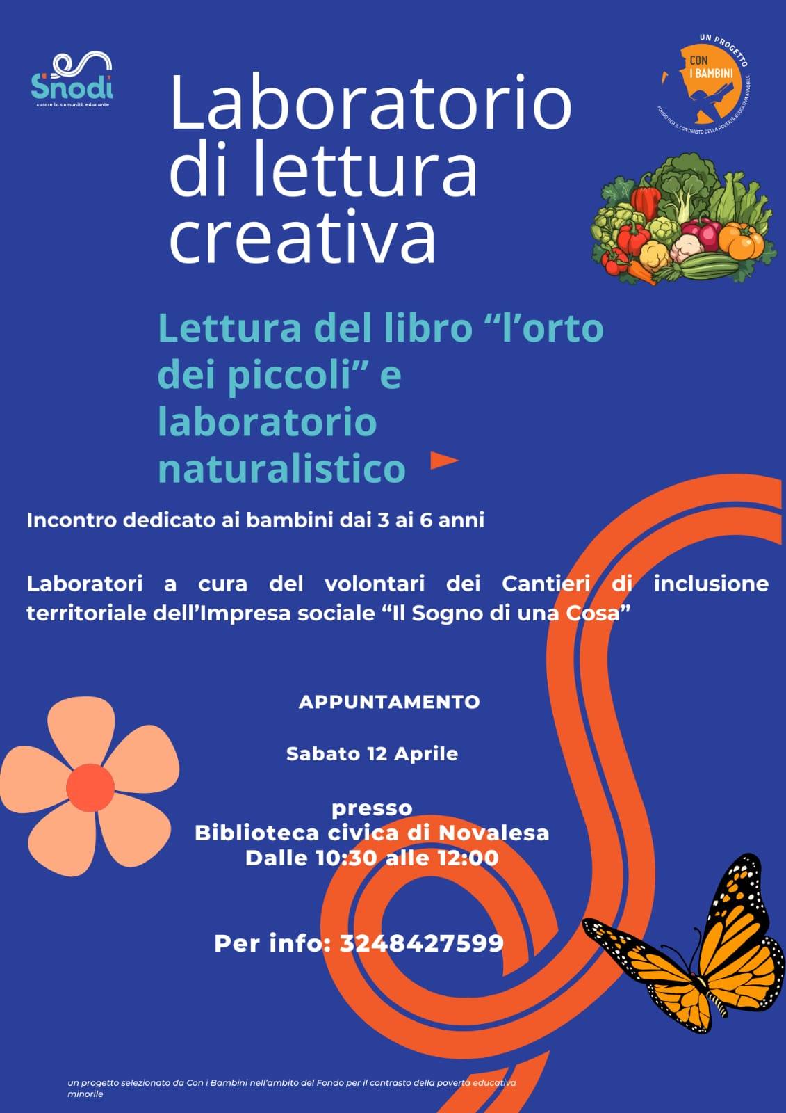 Sabato 12 aprile alla Biblioteca Civica dalle 10:30 alle 12 laboratorio di lettura creativa. Lettura del libro "L'orto dei piccoli" e laboratorio naturalistico per bambini dai 3 ai 6 anni.
