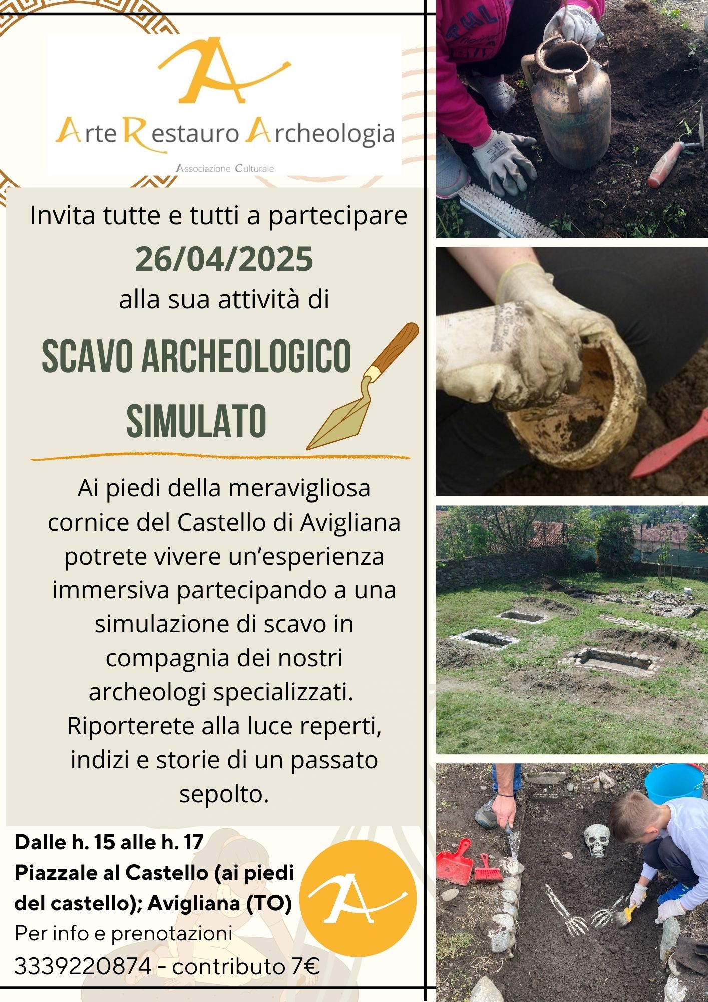 Per informazioni e prenotazioni: messaggio Whatsapp al numero 3339220874 o mail all'indirizzo arterestauroarcheologia@gmail.com.
