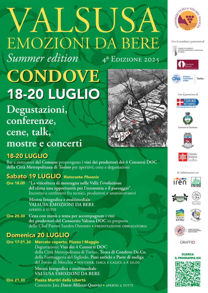 Quest'anno, la manifestazione si svolgerà a Condove da venerdì 18 a domenica 20 luglio, trasformando il comune della media valle in un polo di degustazioni, cultura e confronto sulle prospettive della viticoltura alpina.