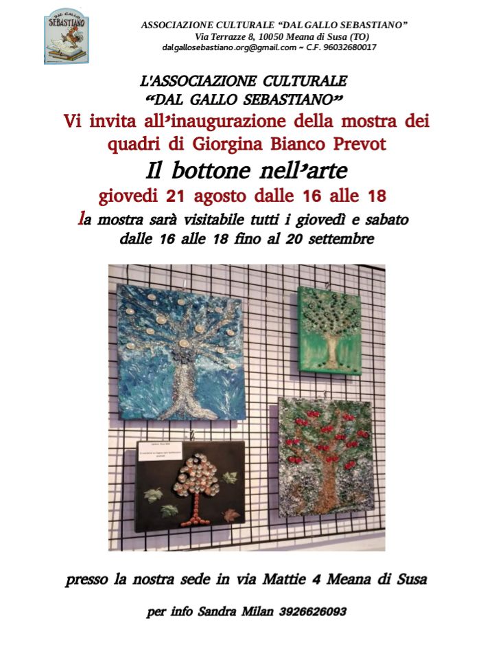 Nella sede dell'associazione "Dal gallo Sebastiano" è allestita la mostra di Giorgina Bianco Prevot "Il bottone nell'arte".