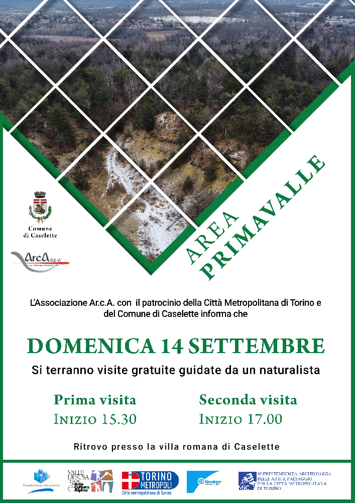L’Area Primavalle, con punto di ritrovo alla Villa romana di Caselette, sarà visitabile dalle 15:30 alle 18:30 con la prima visita in partenza alle 15:30 mentre la seconda è prevista alle 17 circa.