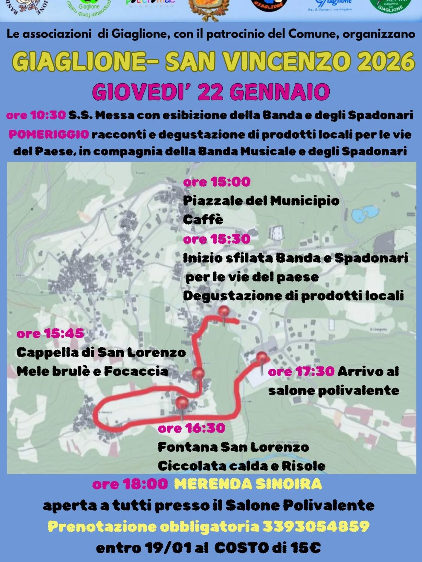 Prenotazione obbligatoria al numero 3393054859 fino ad esaurimento posti entro il 19 gennaio