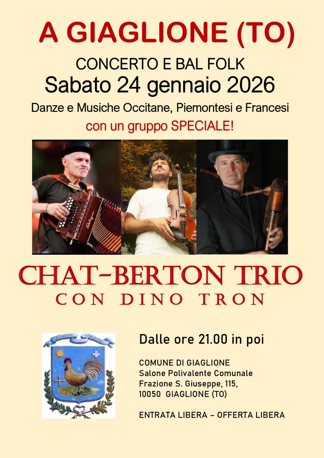 Serata con danze e musiche occitane piemontesi e francesi con Chat-Berton trio con Dino Tron -