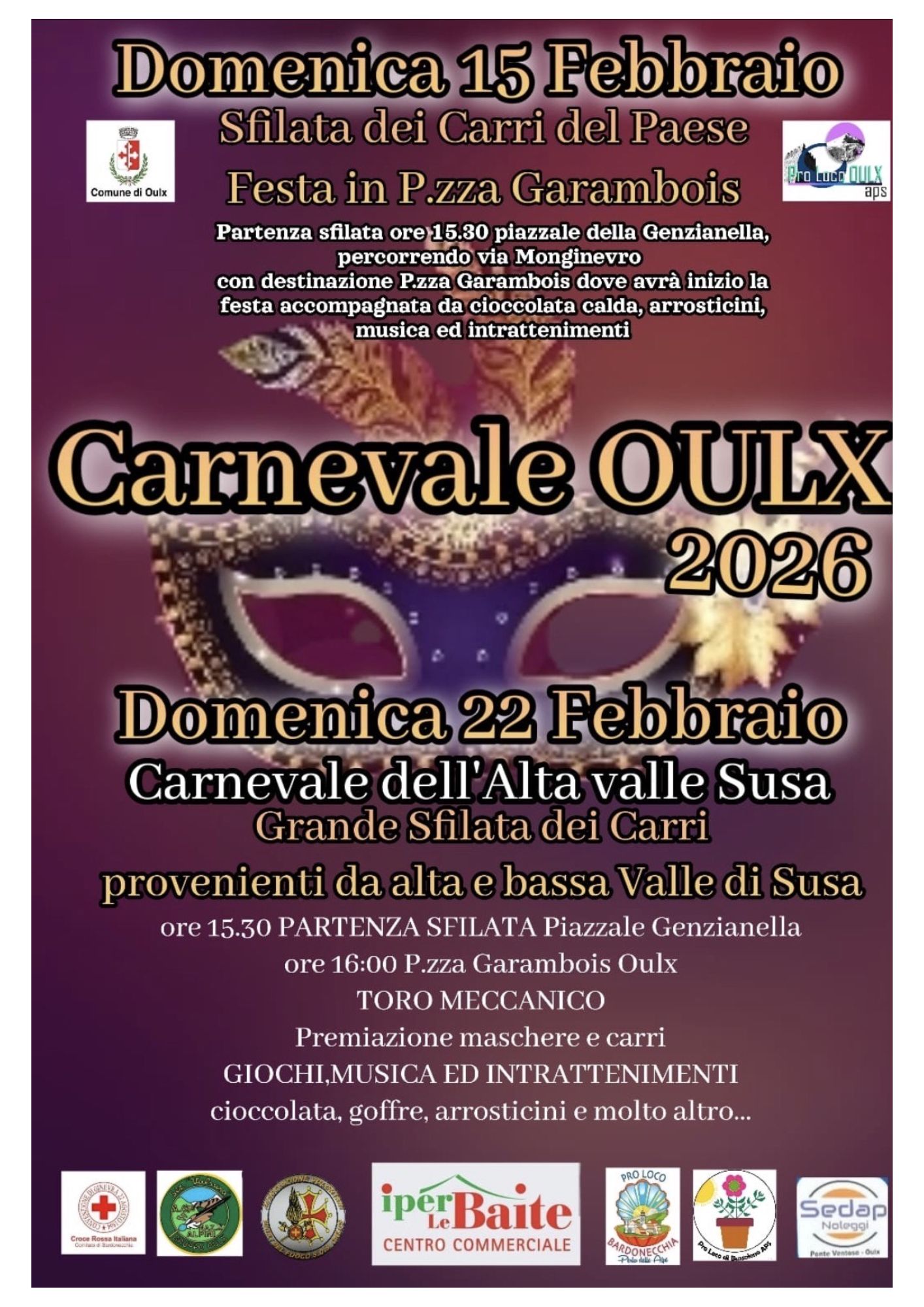 Domenica 15 febbraio sfilata dei carri del paese a partire dalle 15.30 e festa in piazza Garambois.